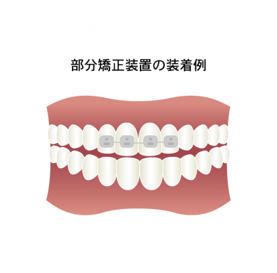 一方、部分矯正とは現在のかみ合わせは大きく変化させず、一部分の歯だけを移動させることを目的に行う矯正治療です。装置も一部分のみ装着します。