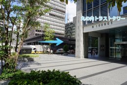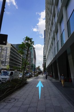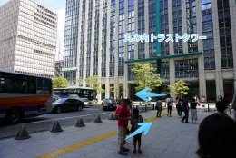 3.東京駅日本橋口を出て、JR高速バスおりばを見ながらすぐ右に曲がり、丸の内トラストタワー角を右に曲がってください。