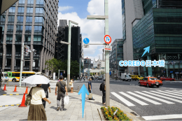 5.まっすぐ東へ進むと、日本橋交差点にCOREDO日本橋が見えてきます。この交差点を左へ曲がります。