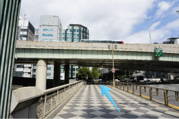 5.高速道路の高架が見えるところまでずっとまっすぐ進んでください。