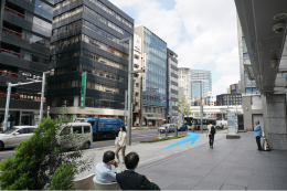 4.地上に出てすぐの交差点を左に曲がり、そのまままっすぐ日本橋方向へ進んでください。