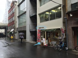 7.日本橋TNビルの入り口が見えてきます。1Fにキッチンシェドさんがあります。