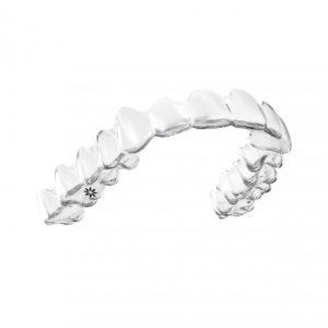 マウスピース型カスタムメイド矯正歯科装置(製品名インビザライン 完成物薬機法対象外)は透明なポリウレタン製で、ワイヤーよりも目立たず、ソフトな感触です。最近は目立たないワイヤー矯正として、裏側(舌側)矯正やホワイトワイヤーがありますが、いずれも金属製ですので、金属アレルギーのある方には不向きです。