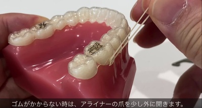 【動画】マウスピース型矯正装置(インビザライン・薬機法対象外)のゴムかけの方法
