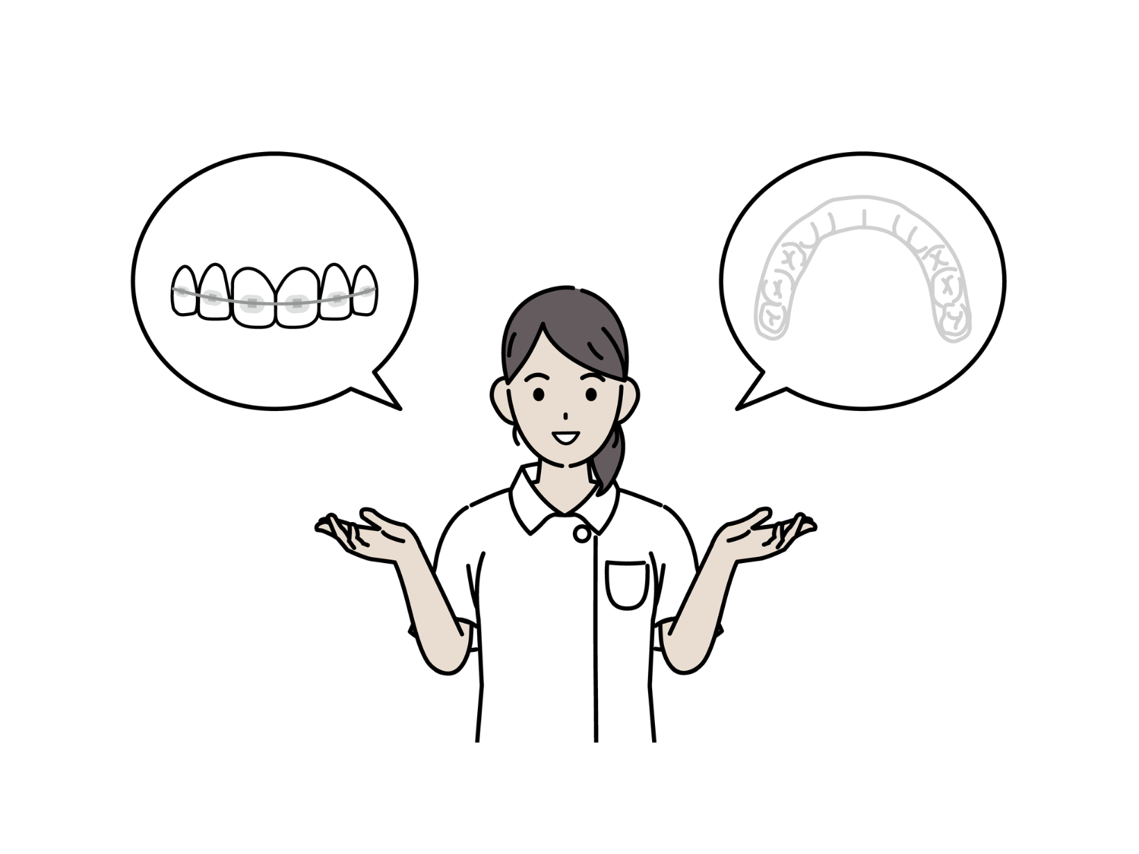 また、装置を取り外せないので歯磨きが難しく、虫歯や歯周病のリスクが高まります。マウスピースと比較すると、通院回数が増える点も考慮する必要があります。