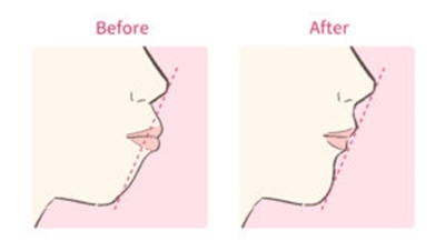 そのため、横顔の印象を効果的に改善できる手術法といえます。なぜなら、オトガイ形成術によって顎先を整えると、Eラインの状態が一気に改善されるからです